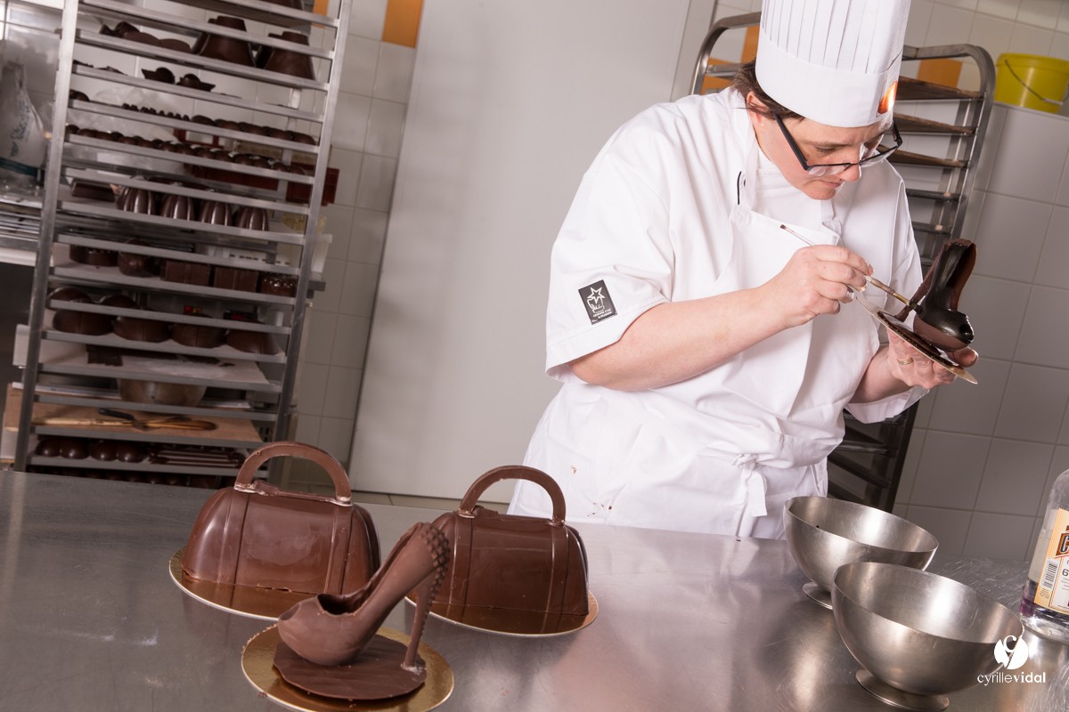 Nous avons effectué un reportage sur une journée complète avec la fabrication dès le matin des viennoiseries, gâteaux puis des chocolats. Des portraits de Delphine et de toute son équipe ont également été réalisés sur le lieu du travail.