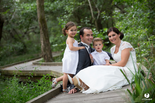 C'est à quelques pas des Barthes de l'Adour, dans le petit village de Téthieu bien connu pour ses encierros, que se sont mariés Julie et Baptiste sous le regard de leurs adorables enfants. Après cette belle journée de cérémonie avec beaucoup d'ambiance, nous nous sommes retrouvés pour la séance couples en décalé au Lac de Léon, puis dans une belle forêt de pins des Landes.