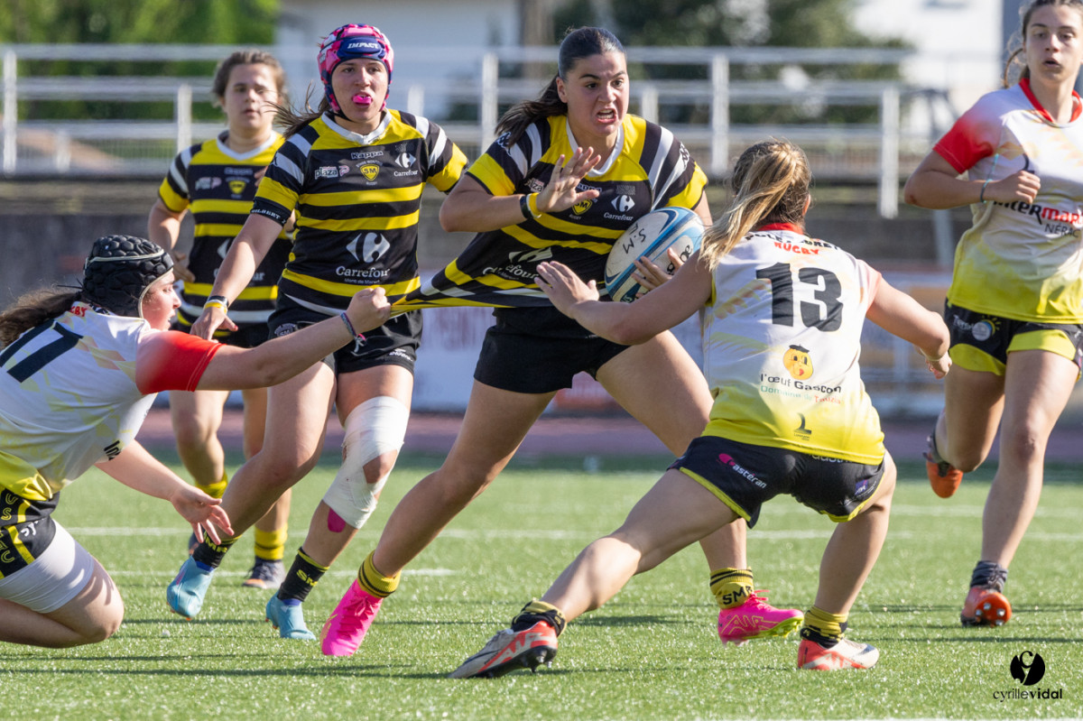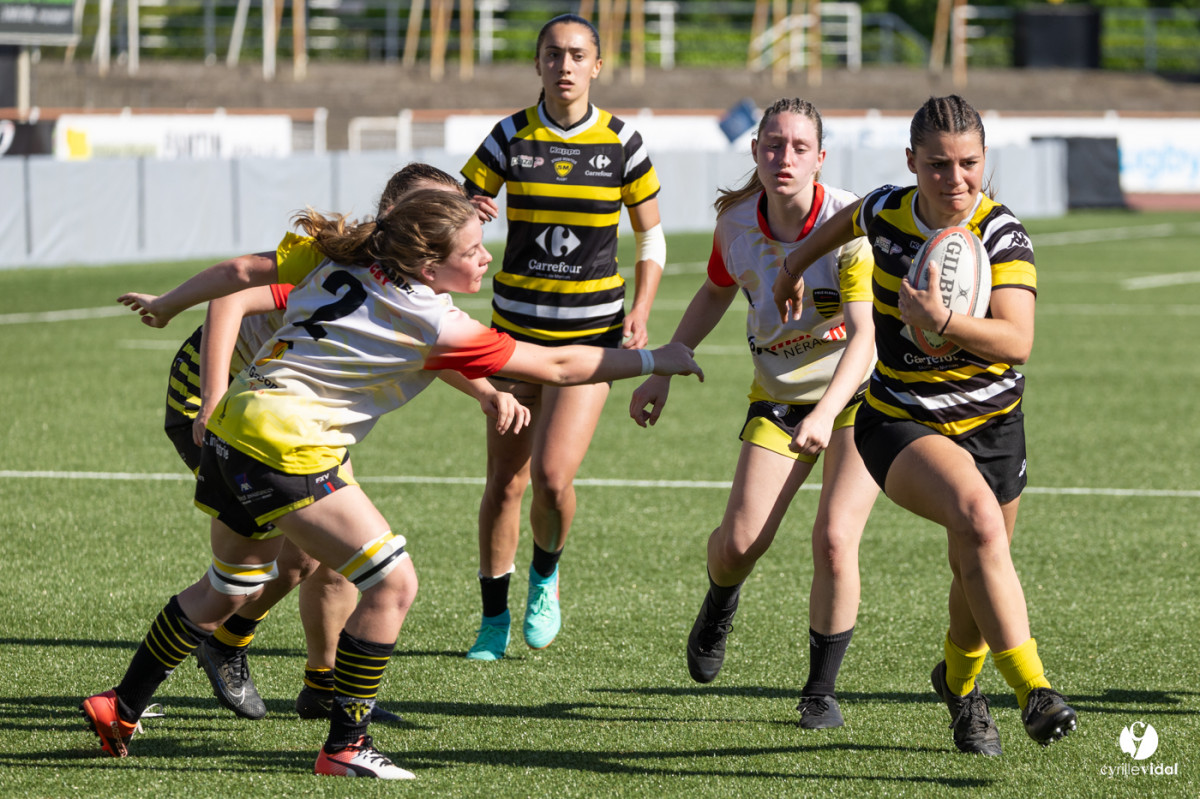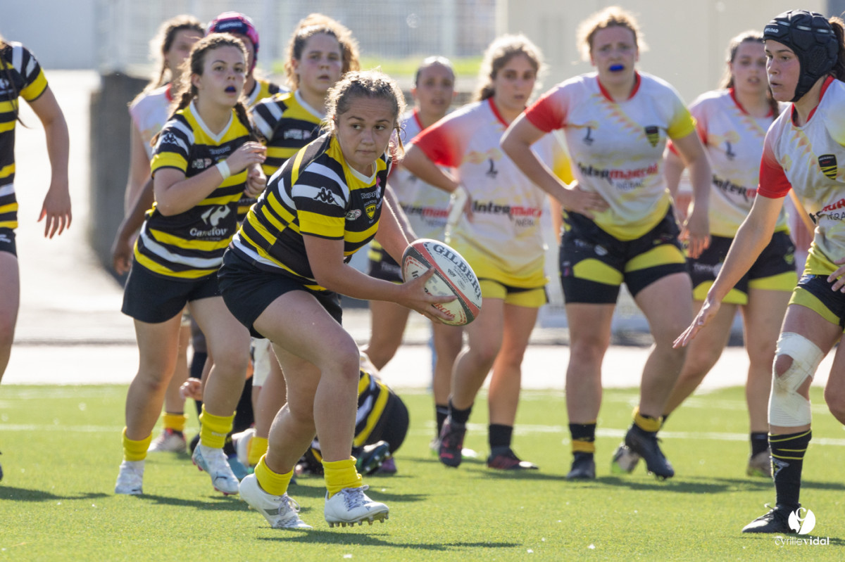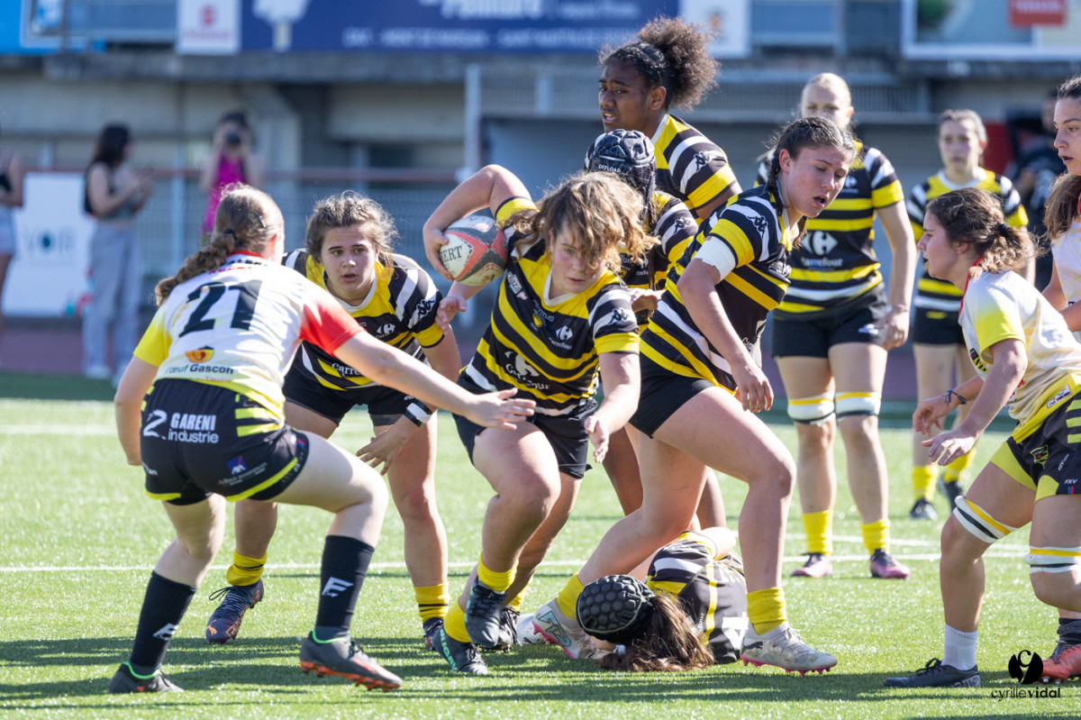 Retrouvez toutes les photos du match sur notre site : https://www.studiovidal.net/folio/3728/20240414-stade-montois-rugby-cadettes-a-xv-nerac.html