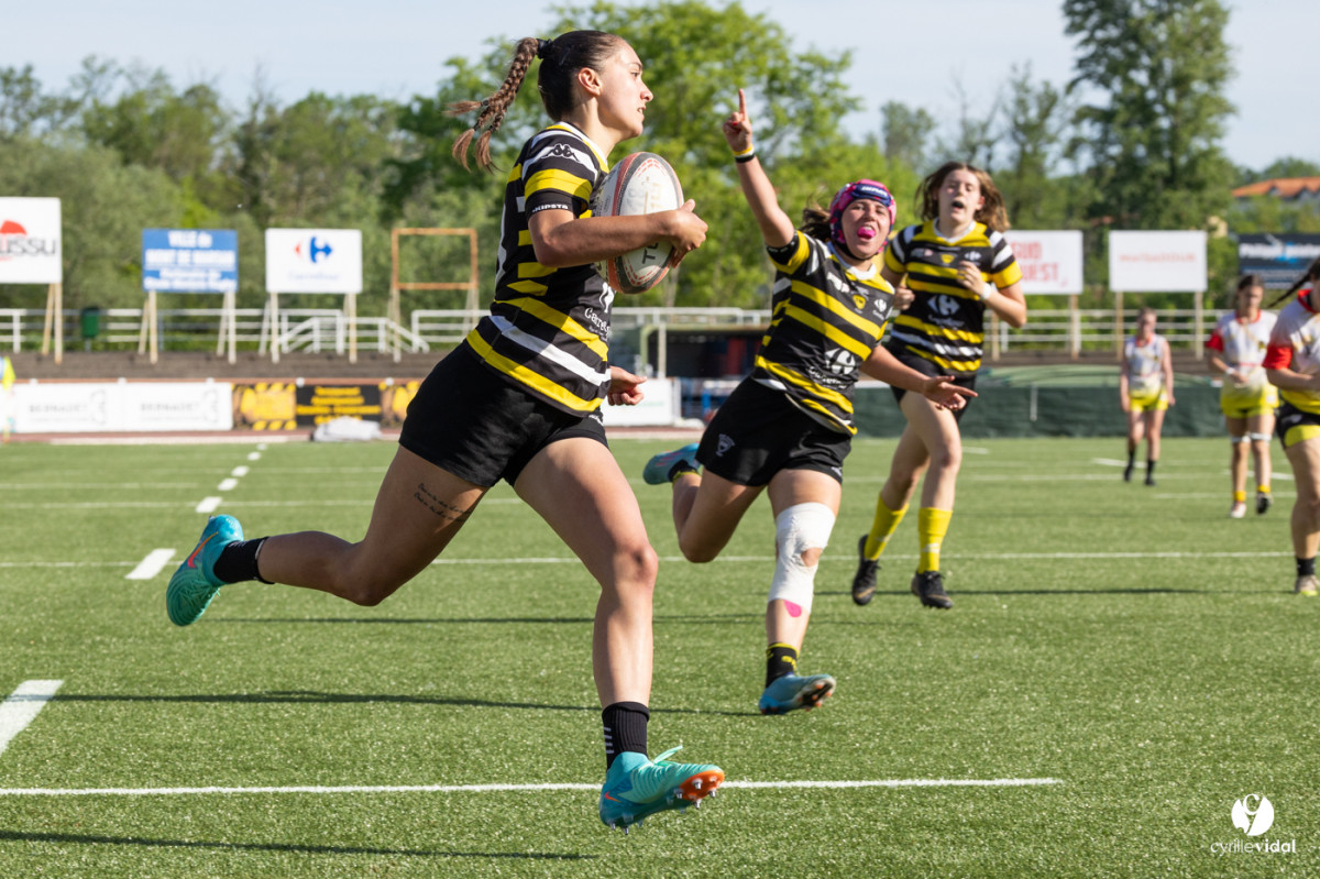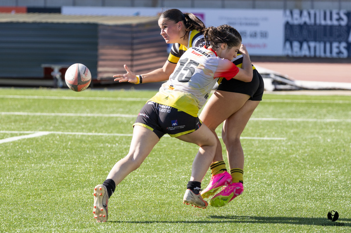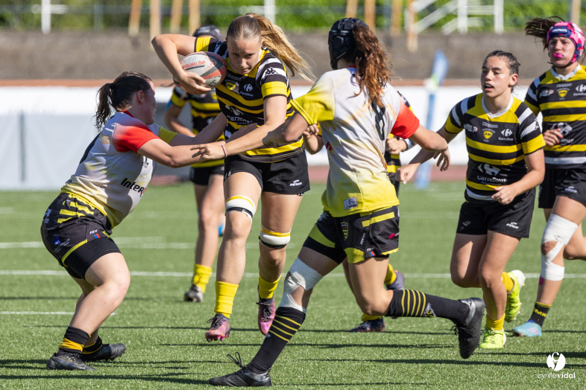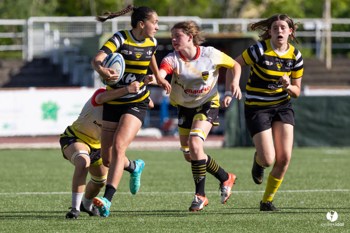 Retrouvez toutes les photos du match sur notre site : https://www.studiovidal.net/folio/3728/20240414-stade-montois-rugby-cadettes-a-xv-nerac.html