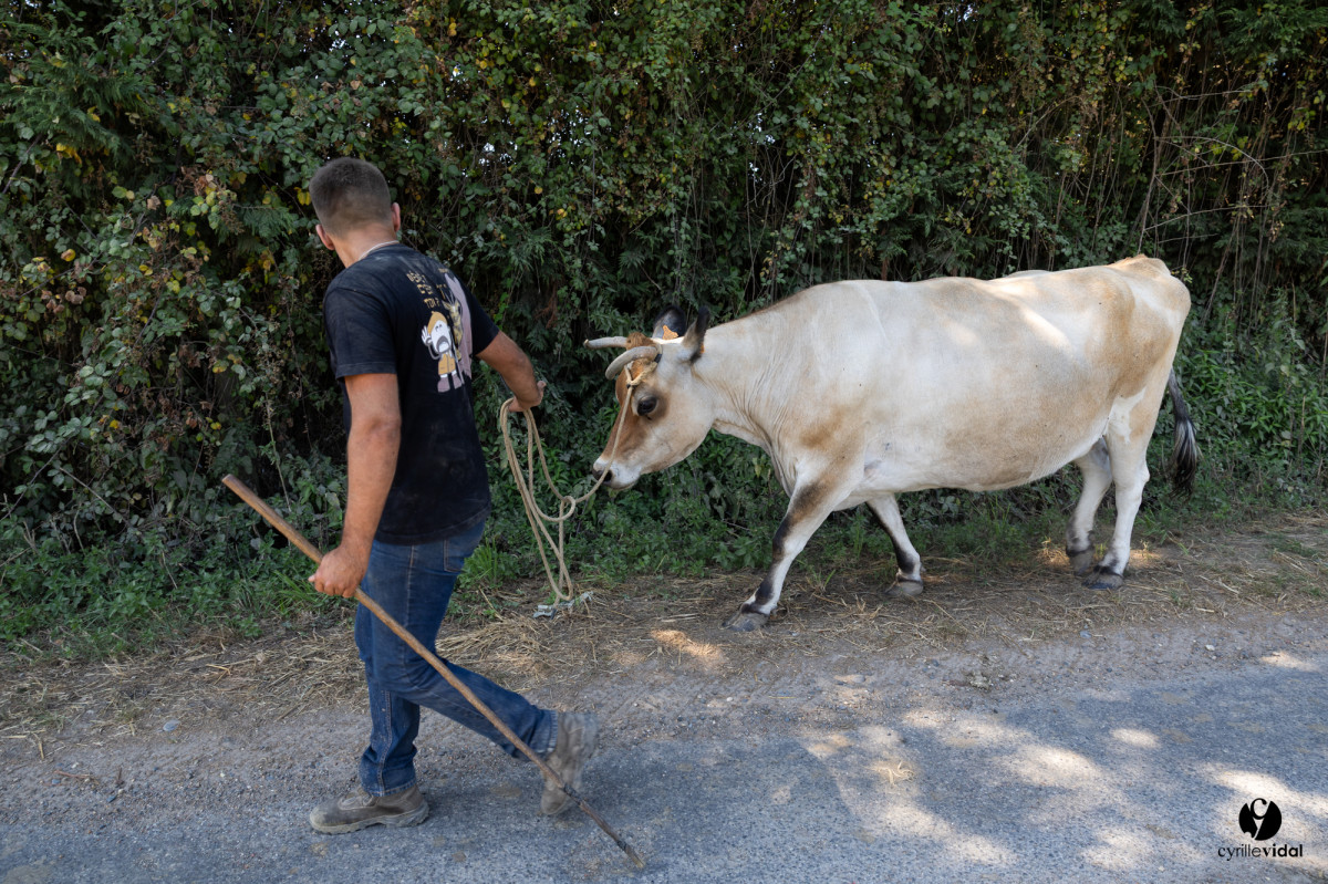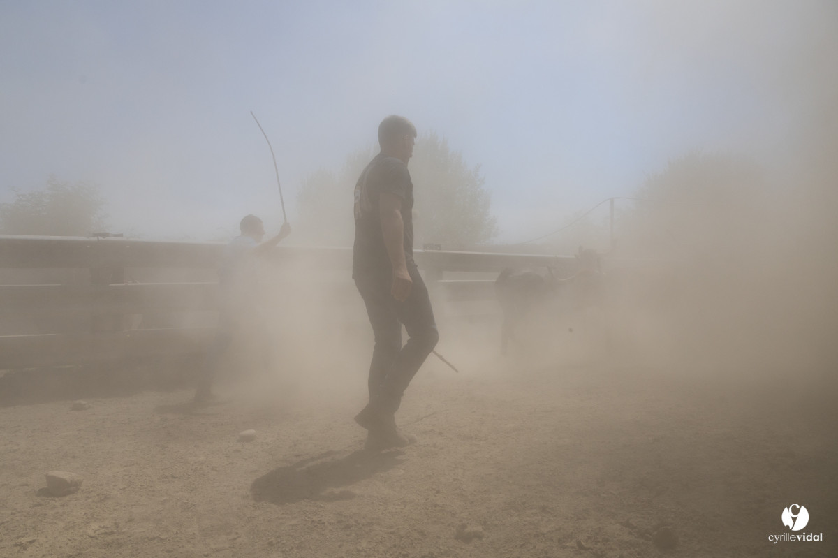 Sous un soleil implacable, la poussière soulevée par les vaches courantes rendait la scène presque irréelle. Les vachers, concentrés, veillaient à leur sécurité tout en manipulant le moins possible les animaux, pour qu’ils conservent toute leur énergie pour la course du soir.
