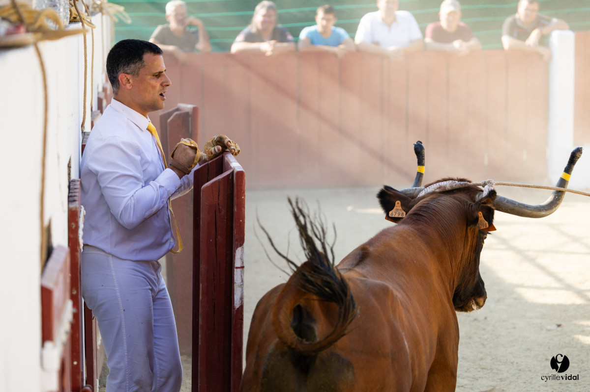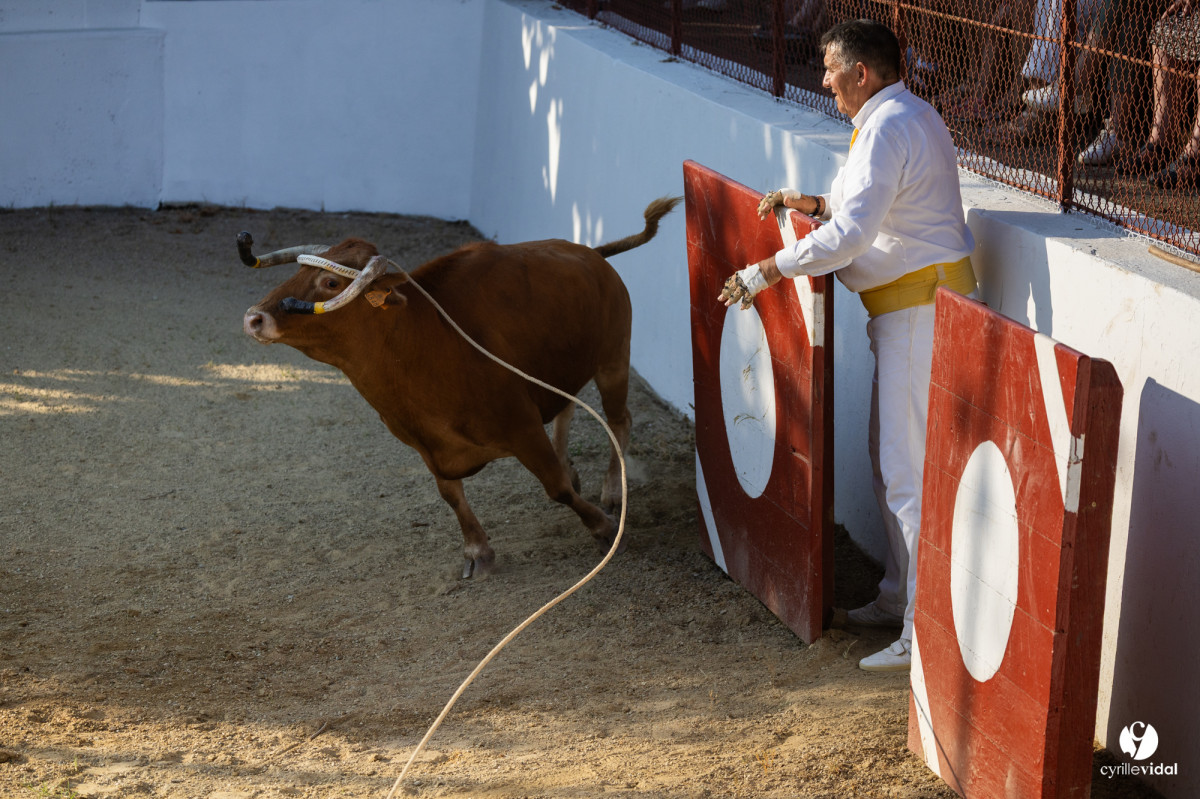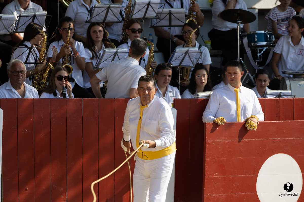 La ganadéria Michel Agruna Ganadéria Dal était en piste. Ce jour restera surtout gravé dans les cœurs pour un moment fort : les adieux d’Éric Merville, cordier emblématique, salués par une ovation émue de tout un village debout.